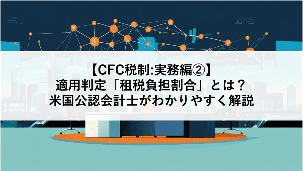 前回の記事「実務編① CFC税制適用判定「外国関係会社」実務ポイントを米国公認会計士がわかりやすく解説」では、CFC税制(タックスヘイブン対策税制)の対象となりうる「外国関係会社」の判定方法について解説しました。貴社の海外子会社がこの最初の判定に該当した場合、次に待っているのが本記事で解説する「租税負担割合」によるスクリーニングです。